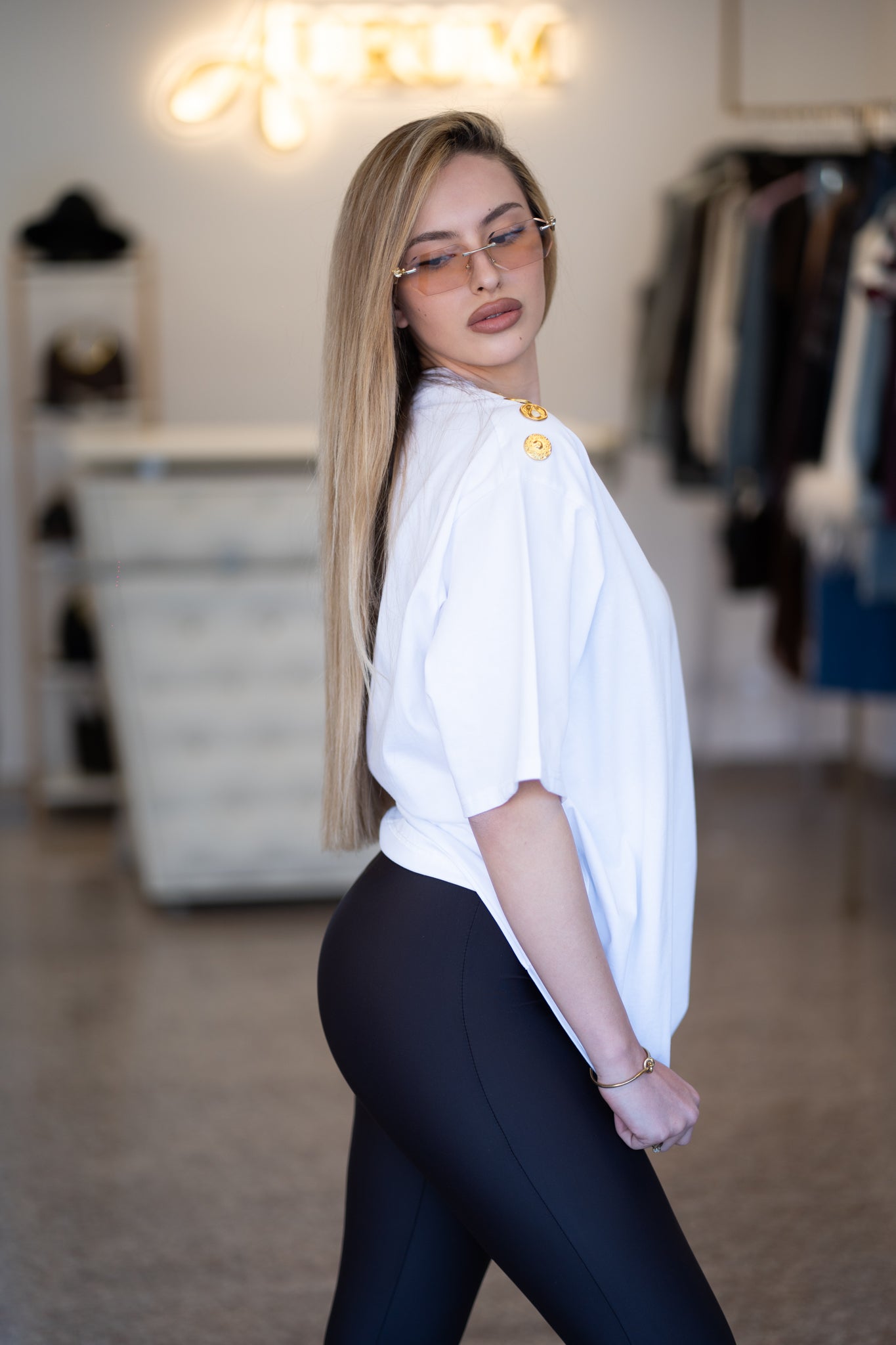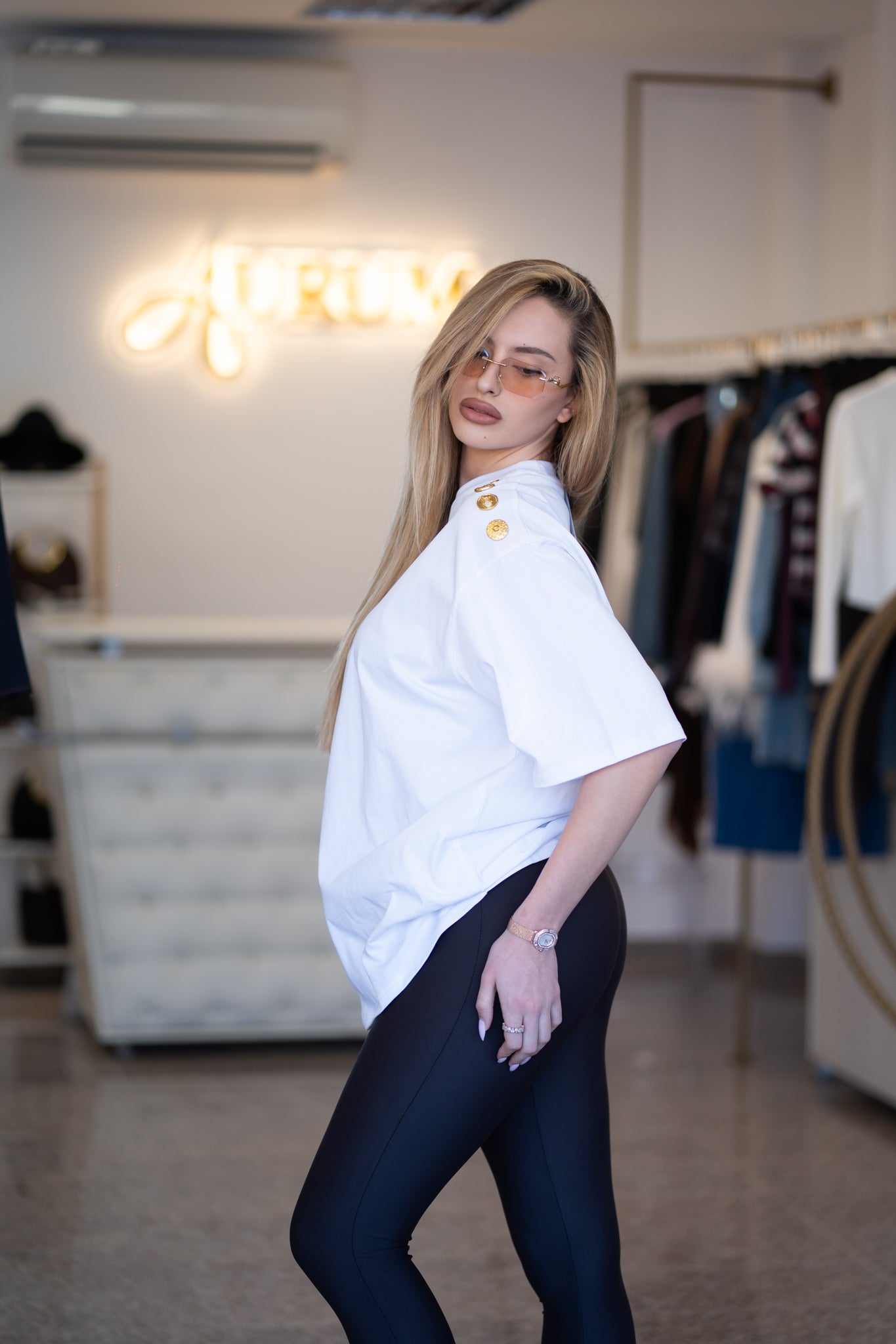 Бяла тениска със златни копчета